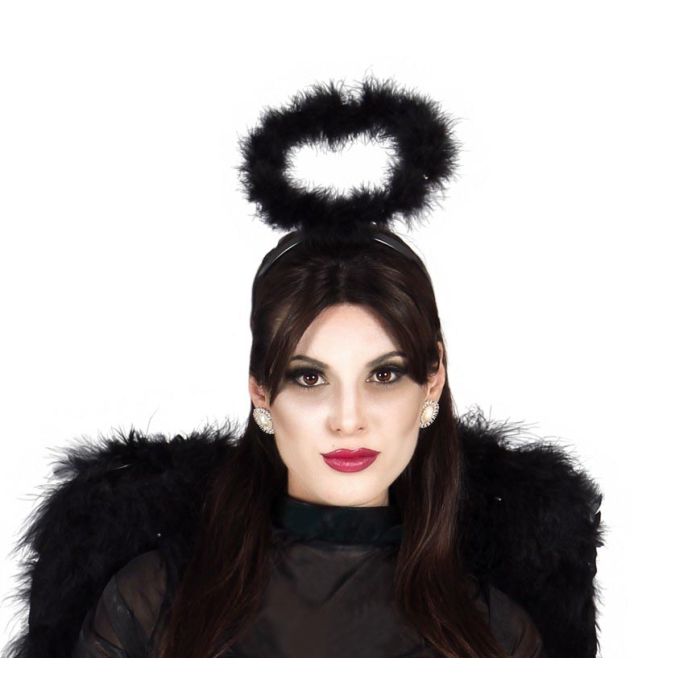 Andělská svatozář - černá. Proměňte se ve zlobivého anděla pomocí černé svatozáře na čelence, jednoduše jí schováte do vlasů nebo paruky. Vhodná na jakoukoliv tematickou party. Hodí se jako doplněk ke kostýmu ale i na halloweenskou party nebo karneval.