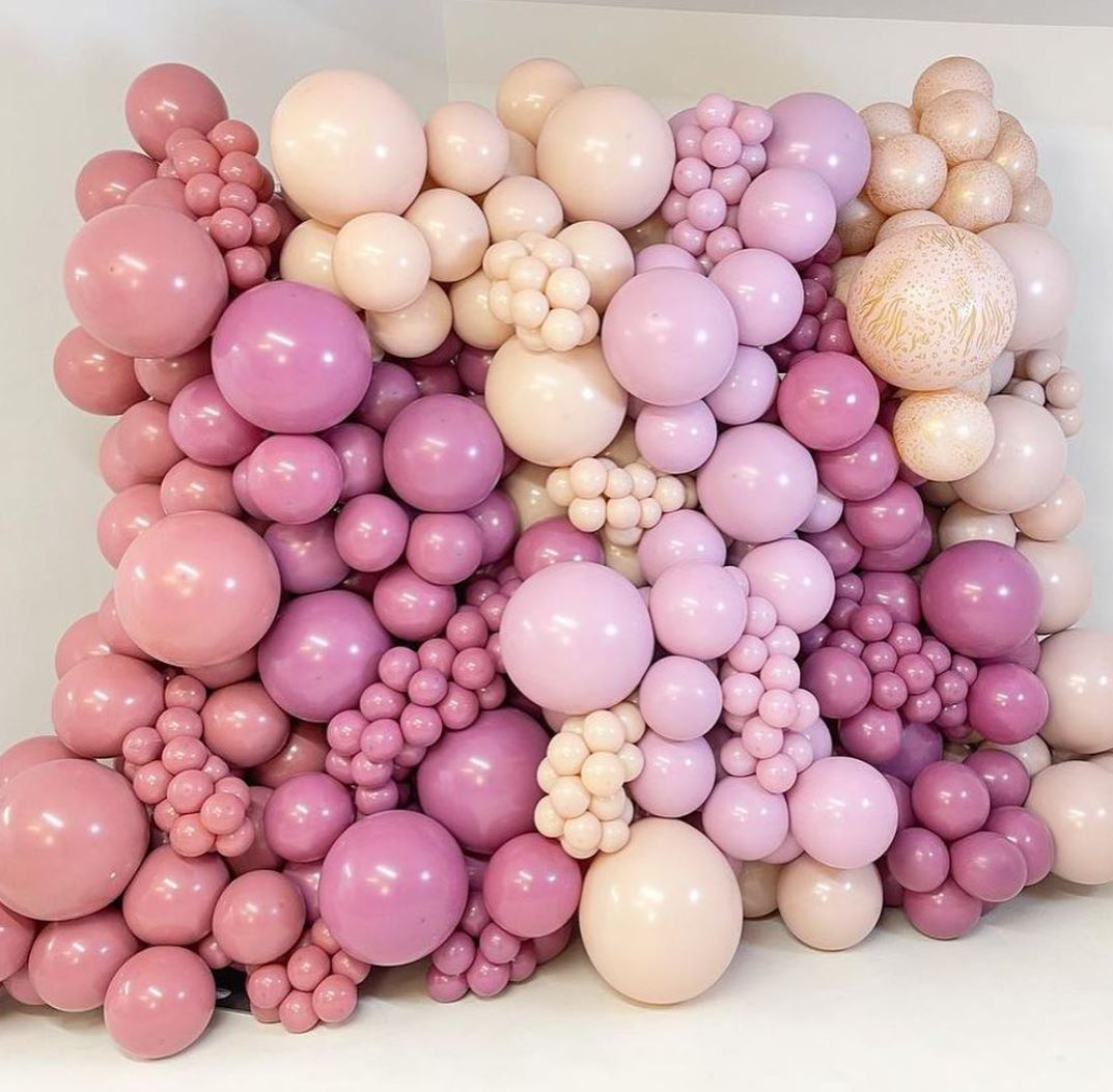 Prémiový kulatý latexový balónek v odstínu růžové barvy, zvané Retro Rosewood, ve velikosti 30 cm. Který je určení k nafukování héliem i vzduchem.