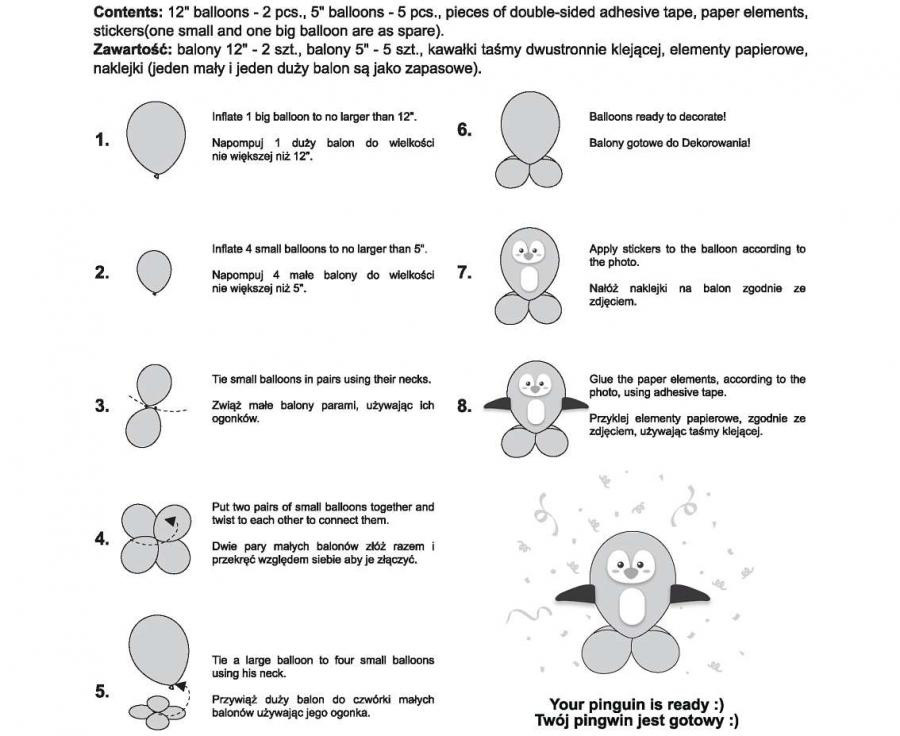 Balonkové zvířátko DIY - tučňák je kreativní a zábavný doplněk pro každou dětskou oslavu nebo jen jako aktivita pro děti. Balení obsahuje vše potřebné pro vytvoření veselého tučňáka z latexových balonků a samolepek. S pomocí přiloženého návodu si zvířátko snadno a rychle vytvoříte.