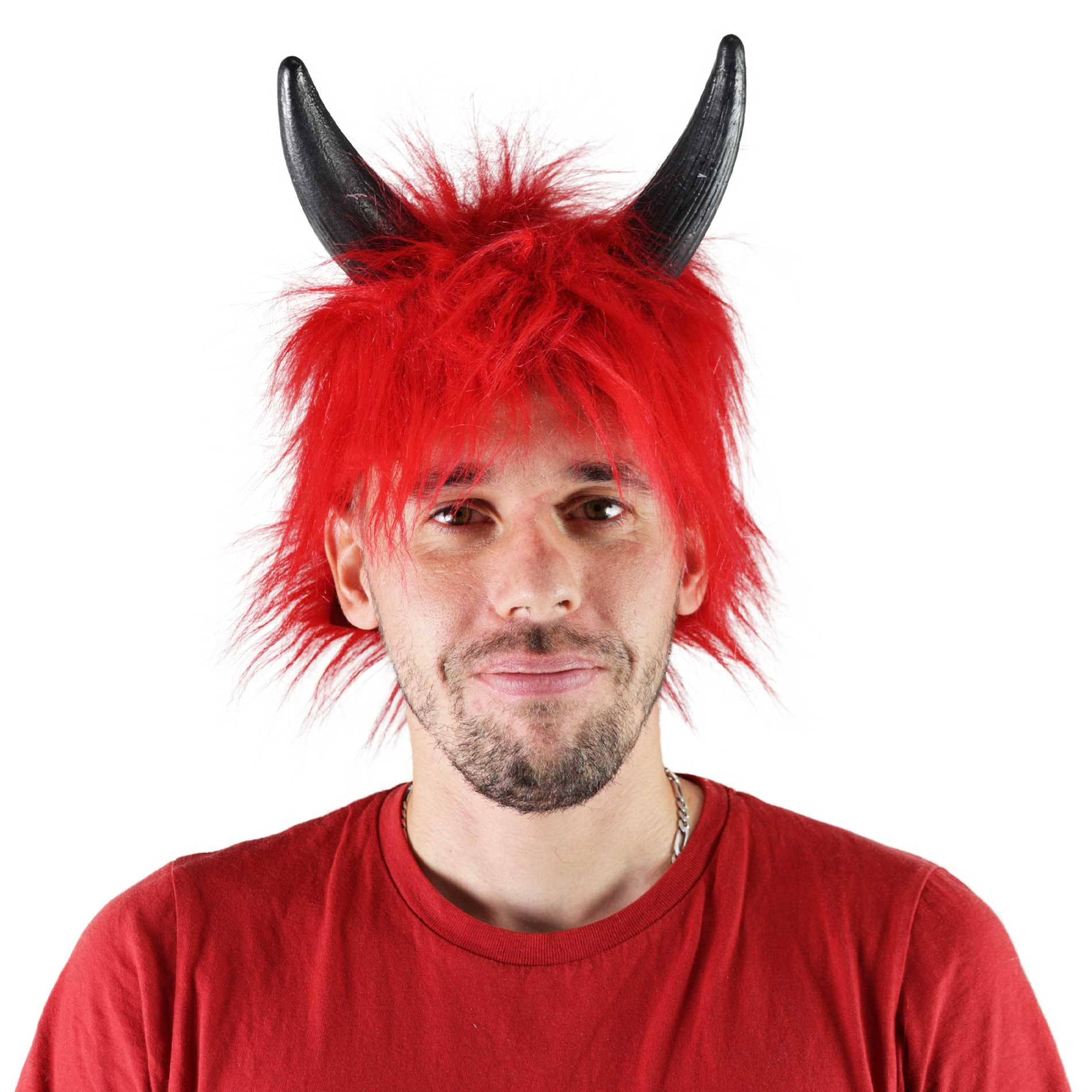 Čertovská paruka s rohy a krátkými červenými vlasy. Doplněk pro Váš čertovský kostým. Využijete ho v době Mikulášských besídek ale i karnevalů nebo jiných tematických akcích.