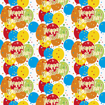 Dárkový narozeninový balící papír se vzorem nápisu Happy Birthday a balonků.