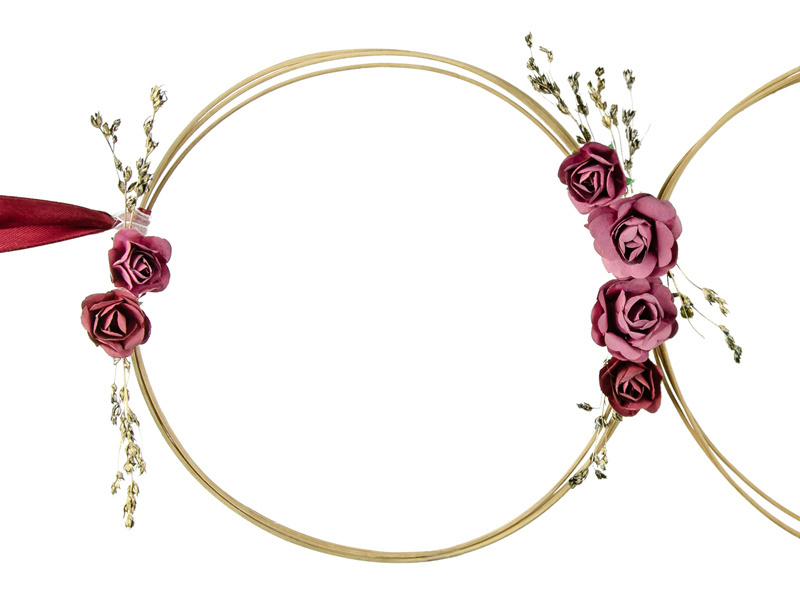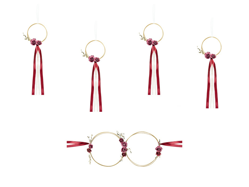 Ratanová dekorace propletené kroužky s květy. Sada ozdob na auto v červené barvě. Tímto jednoduchým dekoračním doplňkem, vyzdobíte například prostor místnosti ale hodí se především na dekorace automobilů.