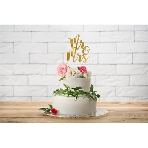 Dekorace na dort nápis Mr and Mrs zlatá 25 cm