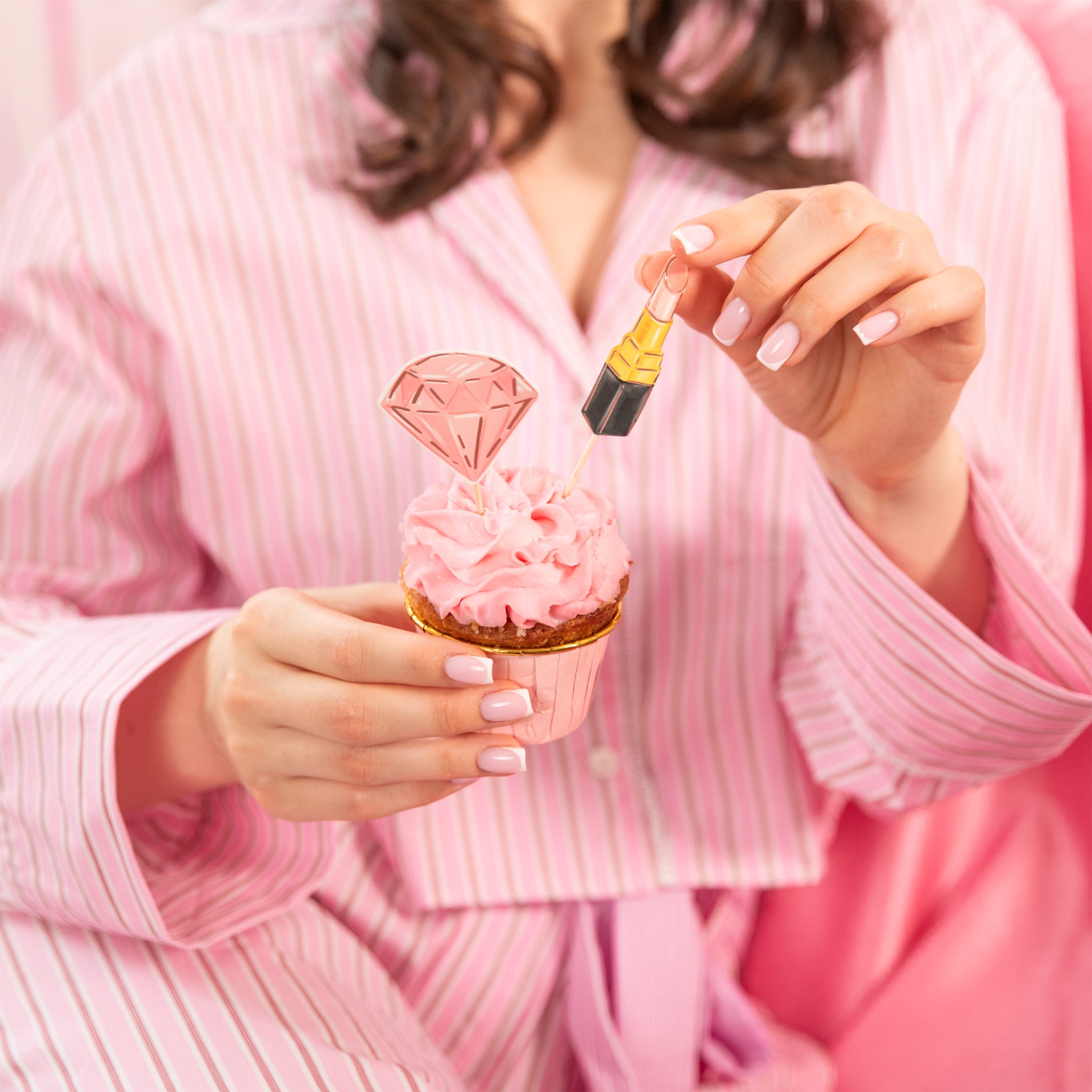 Dekorace na mini zákusky, muffiny i na jiné pochutiny s tématem rozlučka se svobodou. Papírové dekorace ve velikostech 9 až 11 cm včetně podstavců. Balení obsahuje 6 ks.