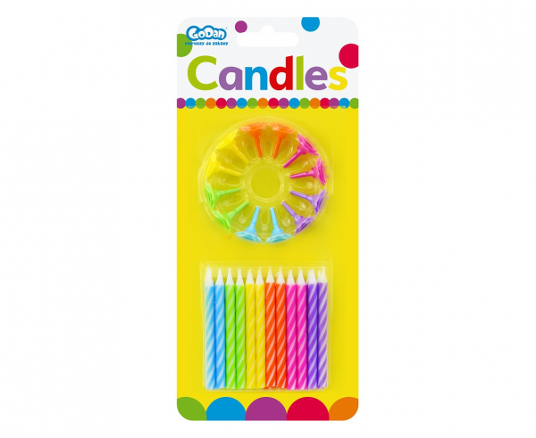 Dortové svíčky v bílé, růžové, modré a žluté barvě s držátky pro bezproblémové upevnění na dort. Udělají radost každému oslavenci, nejen dětem. Balení: 24 ks.