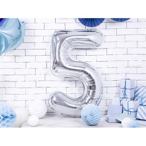 Foliová číslice - stříbrná 5 - 86 cm