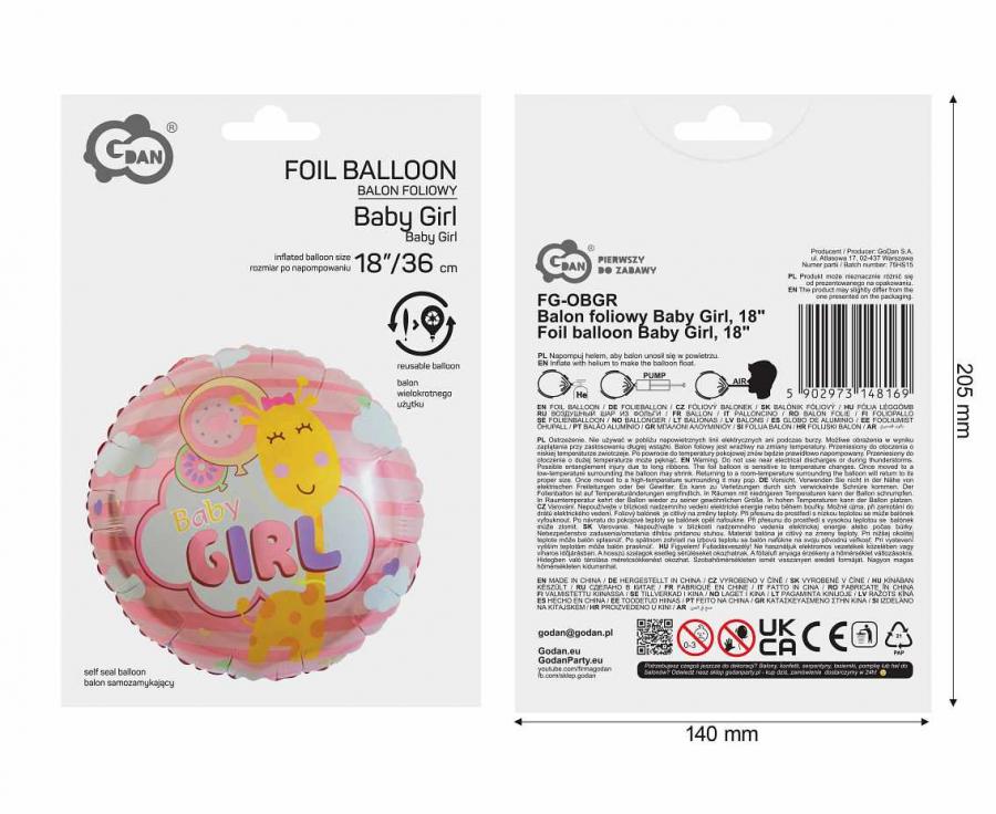 Vneste něhu a radost do oslav příchodu malého děvčátka s tímto krásným fóliovým balonkem Baby Girl. Jemný růžový design s pruhy, usměvavou žirafou a balónkem vytváří milou a vřelou atmosféru. Balonek se skvěle hodí na výzdobu baby shower, první návštěvy u novorozence nebo jako doplněk ke květině či dárkovému koši.