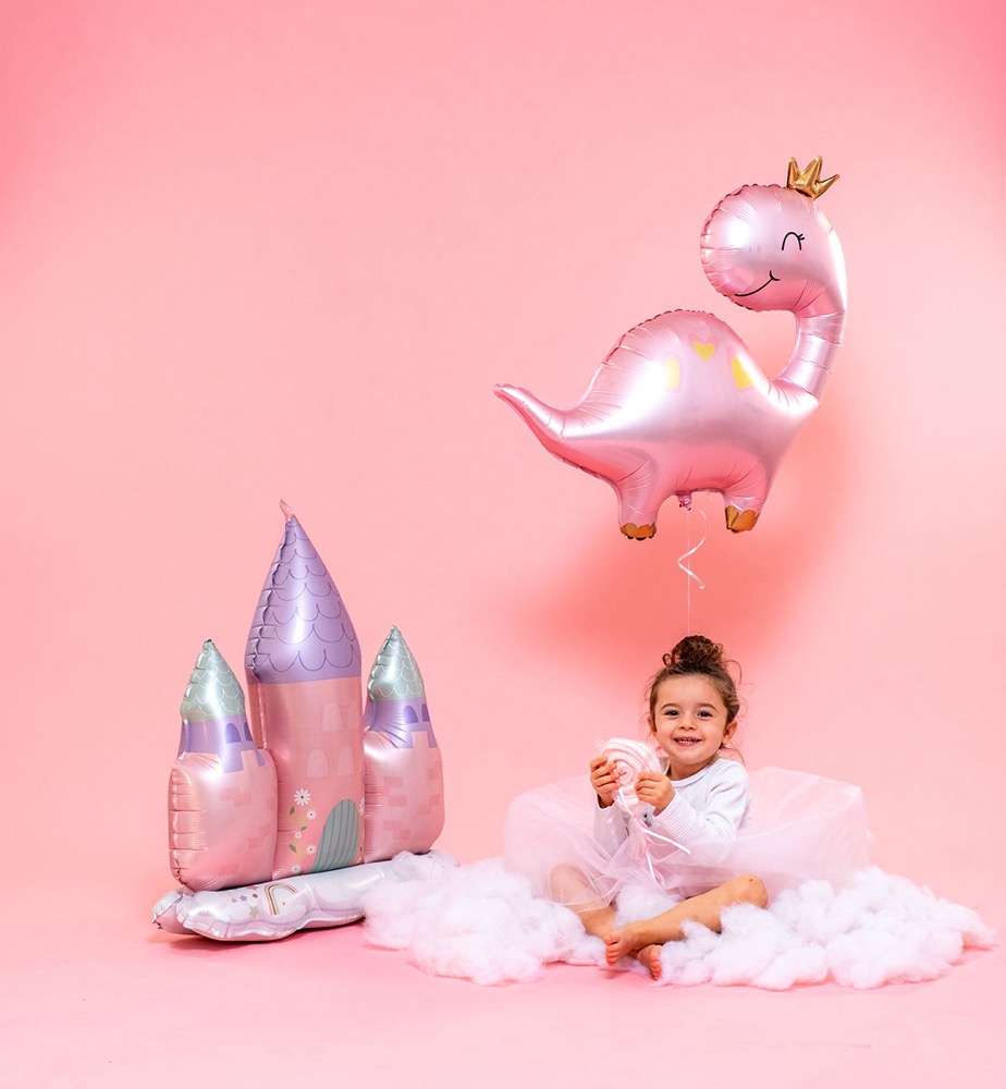Foliový balonek v motivu velkého modrého dinosaura se zlatou korunkou, poslouží jako dekorace prvních narozenin, dinosauří party, ale i jako výzdoba tematické organické girlandy a samozřejmě jako dárek k narozeninám. Balonek lze nafouknout klasicky vzduchem, ale i heliem. Jeho velikost je 59 x 69 cm.