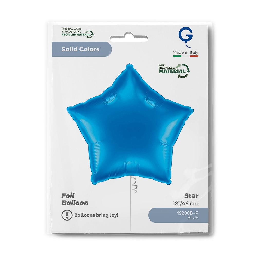 Technické parametry: Rozměry po nafouknutí: 36 x 36 cm Rozměry před nafouknutím: cca 45 cm (18") Objem: 14 l Materiál: metalická fólie Barva: modrá (Blue) Tvar: hvězda Nafukování: vzduch i hélium Samo uzávěr: Ano Obchodní balení: Ano Balení: 1 ks
