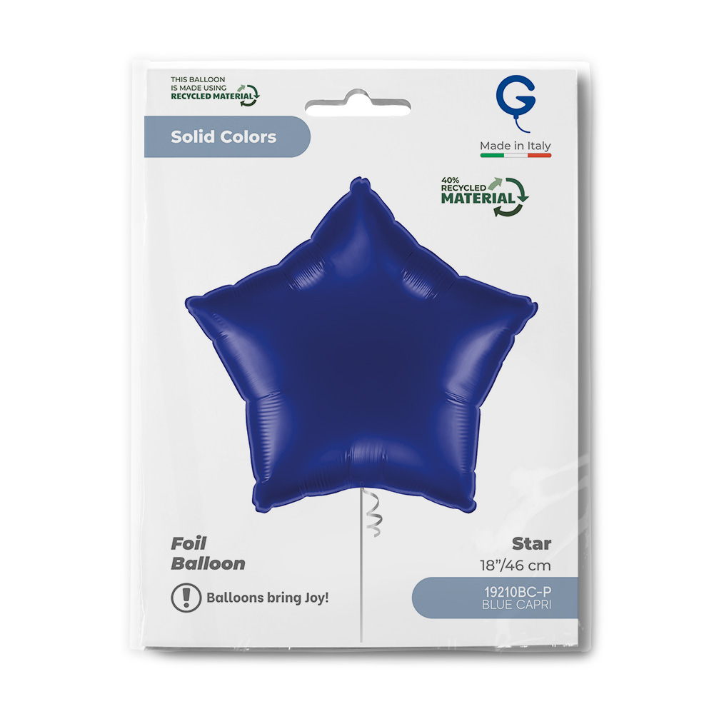 Fóliový balonek ve tvaru hvězdy v odstínu Blue Capri zaujme hlubokou tmavě modrou barvou, která působí elegantně, klidně a velmi stylově. Lesklý povrch zvýrazňuje intenzitu barvy a dodává balónku atraktivní vzhled vhodný pro moderní i slavnostní dekorace.