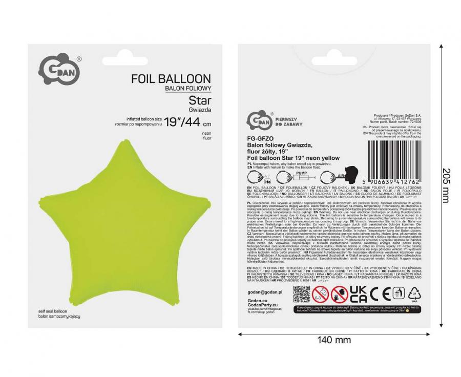Tento fóliový balonek ve tvaru pěticípé hvězdy v zářivě neonově žluté barvě je ideální volbou pro všechny, kteří chtějí dodat své výzdobě šťávu a energii. Skvěle se hodí na narozeniny, dětské oslavy, karnevaly, letní párty nebo tematické eventy. Díky univerzálnímu designu jej snadno zkombinujete s dalšími barvami nebo tvary balónků – ať už do girlandy, balónkové kytice nebo jako závěsnou dekoraci.