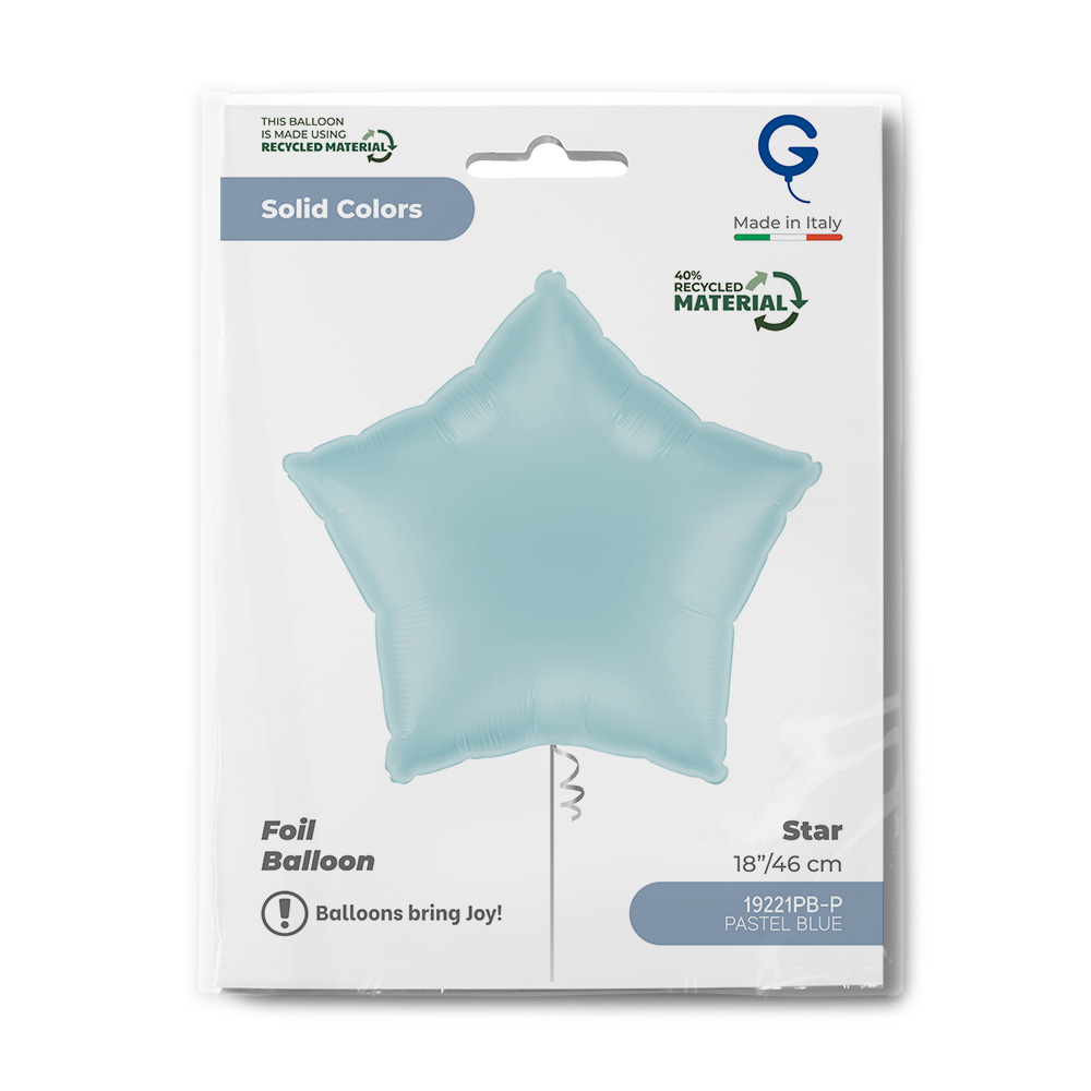 Fóliový balonek ve tvaru hvězdy v odstínu Pastel Blue přináší do výzdoby jemný světle modrý tón, který působí klidně, svěže a velmi elegantně. Lesklý povrch zvýrazňuje jeho pastelový charakter a dodává dekoraci moderní a vzdušný vzhled.