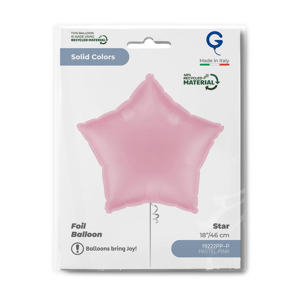 Fóliový balonek ve tvaru hvězdy v odstínu Pastel Pink přináší do výzdoby jemný světle růžový tón, který působí něžně, romanticky a velmi elegantně. Lesklý povrch zvýrazňuje jeho pastelový charakter a dodává dekoraci svěží a moderní vzhled.