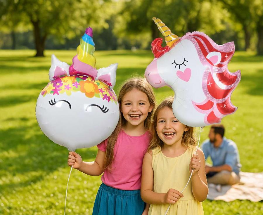Fóliový balonek zasněný jednorožec okouzlí na první pohled jemným výrazem, pastelovými barvami a elegantním tvarem. Tento balonek patří mezi nejoblíbenější motivy dětských oslav a perfektně se hodí na narozeninové party, tematickou unicorn oslavu, zahradní slavnost nebo jako originální dárek. Díky svým rozměrům funguje jako výrazná dekorační dominanta, která skvěle vynikne samostatně i jako součást balónkové girlandy organického stylu. Balonek je vybaven samo uzávěrem a je určený výhradně k plnění héliem – při naplnění vzduchem se nebude vznášet.