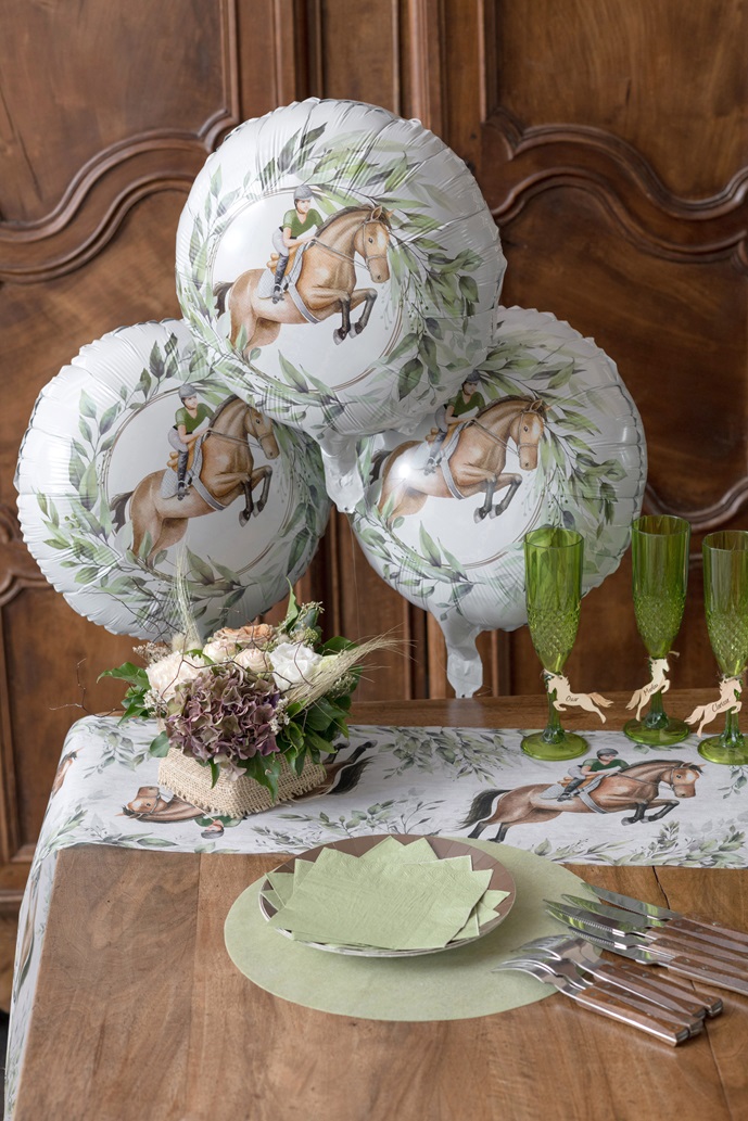 Kulatý fóliový balónek v bílé barvě a potiskem závodního koně. Tento balónek je perfektní dekorační doplněk na oslavu narozenin nebo jako výzdoba party. Hodí se také jako malý dárek. Balonek lze nafouknout klasicky vzduchem ale i heliem.