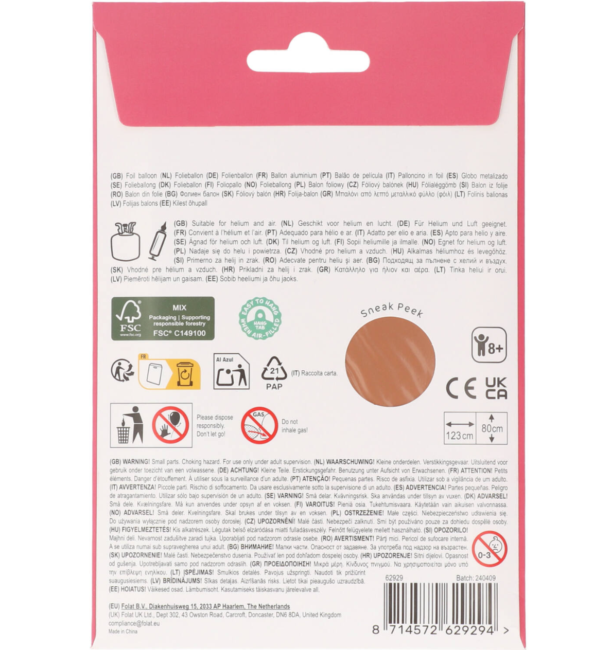 Vyroben z kvalitní recyklovatelné metalické fólie se samouzavíracím ventilem, takže nafukování je snadné a bez starostí.
