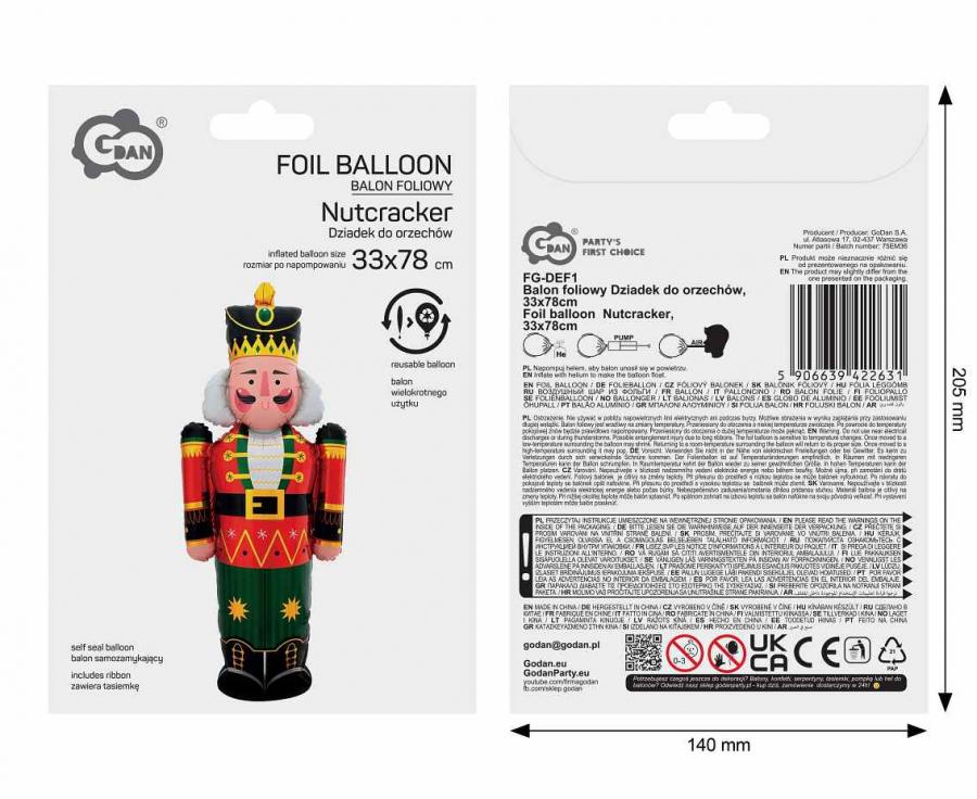 Fóliový balonek Louskáček přináší klasickou vánoční atmosféru v podobě jedné z nejikoničtějších zimních postav. Díky výrazným barvám, krásným detailům a tradičnímu designu se stane dominantou každé vánoční výzdoby – ať už jej použijete na firemní večírek, školní besídku, adventní trhy nebo domácí sváteční dekoraci.