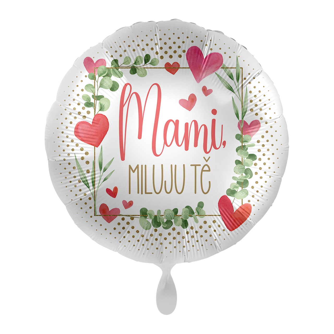 Jemný a emotivní fóliový balonek s nápisem Mami, miluju tě je krásným způsobem, jak mamince říct to nejdůležitější. Květinový věnec, srdíčka a zlaté detaily vytvářejí elegantní a hřejivý design, který se skvěle hodí ke Dni matek, ale i jako překvapení jen tak pro radost. Balonek vynikne samostatně, v balónkovém buketu nebo jako součást dárkového aranžmá. Je určený k plnění vzduchem i héliem, má samo uzávěr a při nafouknutí héliem vydrží létat několik dní.