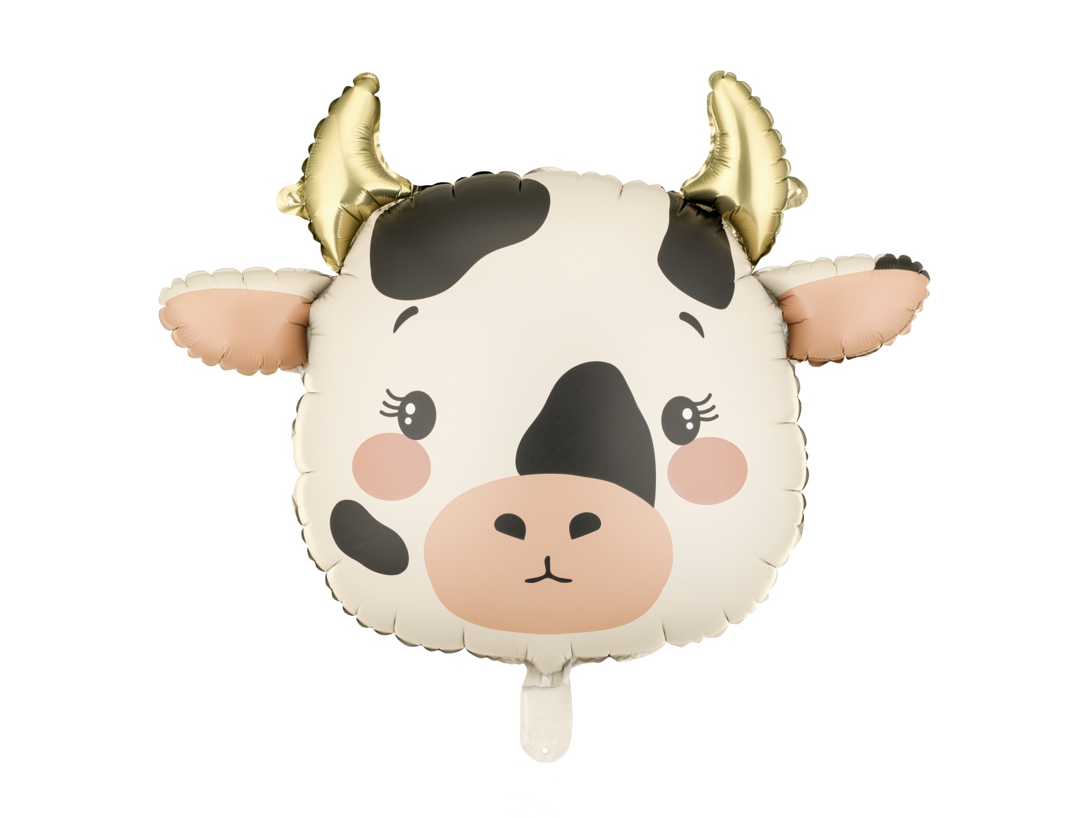 Fóliový balonek Kravička v jemné krémové barvě s černými flíčky, růžovými tvářemi a zlatými rohy je perfektní volbou na dětskou oslavu, farmářskou party nebo tematickou výzdobu se zvířátky. Díky svému výraznému tvaru krásně vynikne samostatně i jako součást balónkové girlandy nebo větší dekorace.