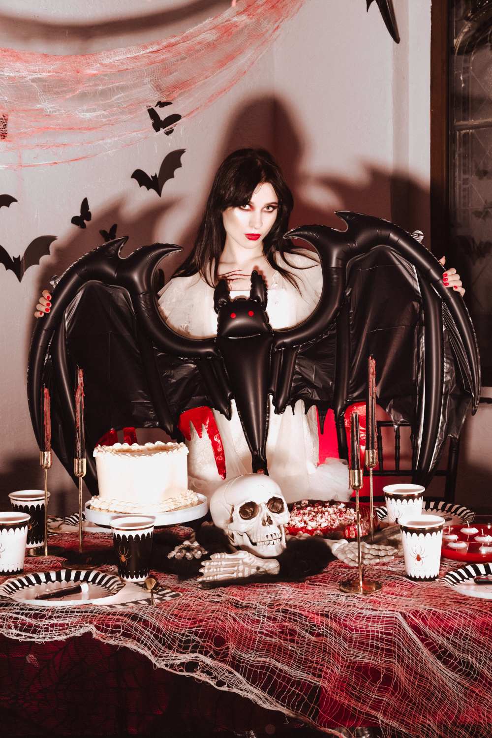 Černé latexové balonky Kalisan o velikosti 30 cm s potiskem oranžových netopýrů. Balení 6 ks je ideální na výzdobu halloweenské party, tematických večírků i podzimních akcí. Vhodné k nafukování vzduchem i héliem.