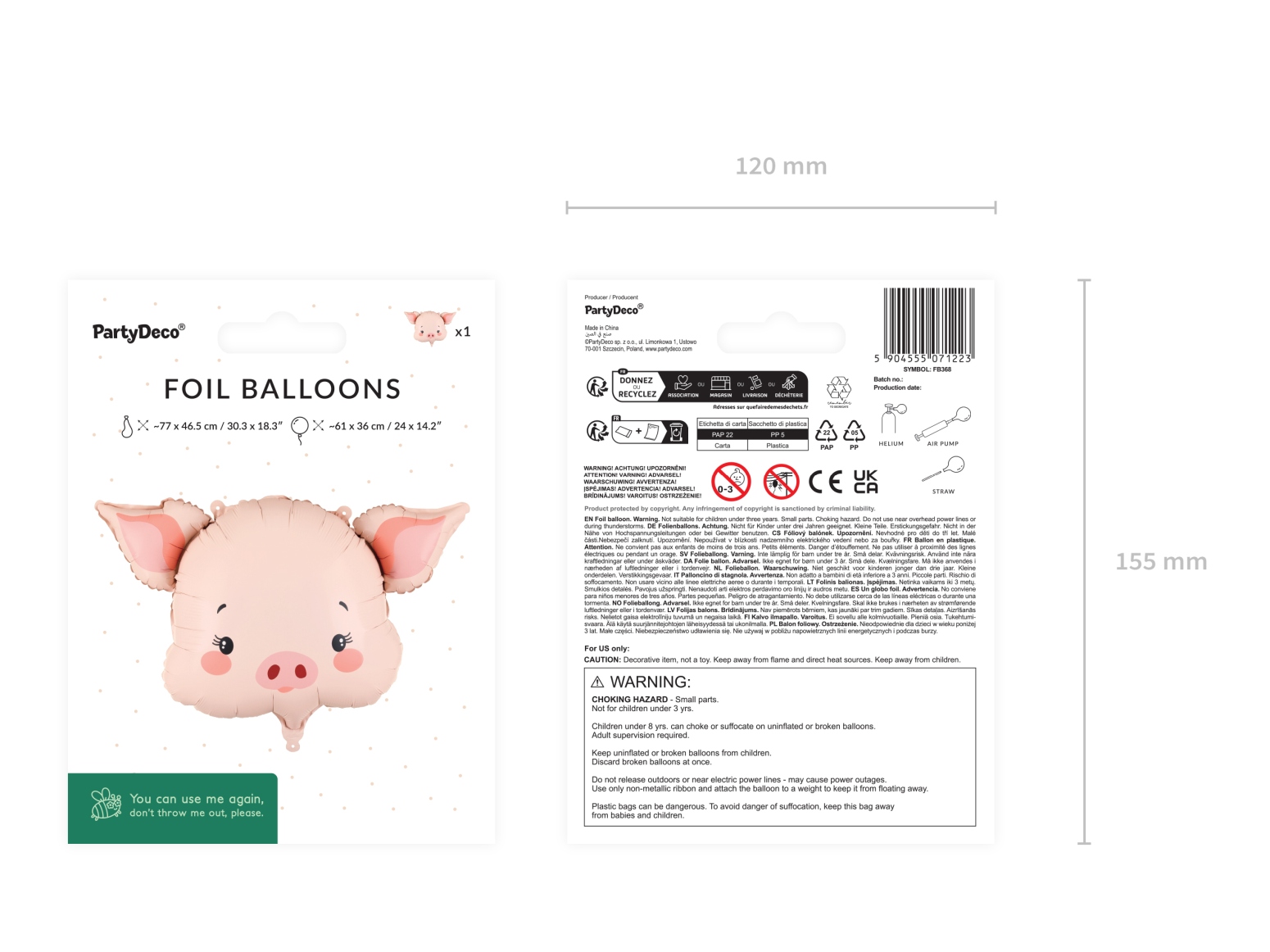 Balonek je určený k plnění vzduchem i héliem. Při naplnění héliem se bude vznášet a vytvoří výrazný dekorační prvek, při naplnění vzduchem jej můžete zavěsit nebo zakomponovat do balónkové girlandy. Díky kvalitní fólii drží tvar a lze jej opatrně dofukovat.