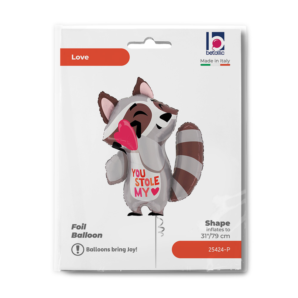Fóliový balonek ve tvaru roztomilého mývala s nápisem You Stole My Heart je originální romantická dekorace, která okamžitě zaujme svou velikostí i hravým designem. Mýval držící růžové srdce je ideální volbou na Valentýna, výročí, zásnuby nebo jako překvapení pro partnera či partnerku.