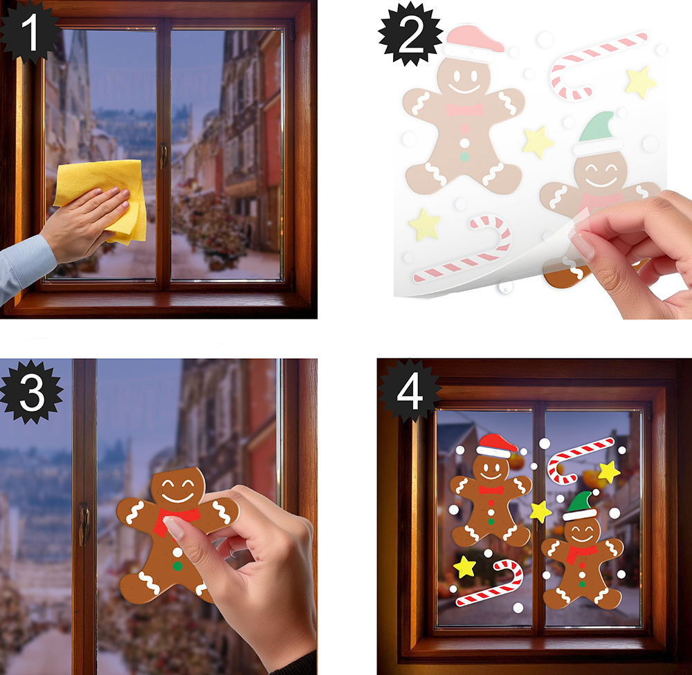 Vánoční dekorace na okno, díky které můžete naladit atmosféru ve vašem bytě. Zároveň bude vaše okno vypadat skvěle po celou dobu vánočních svátků. Gelové samolepky krásně přilnou a dají se použít opakovaně.
