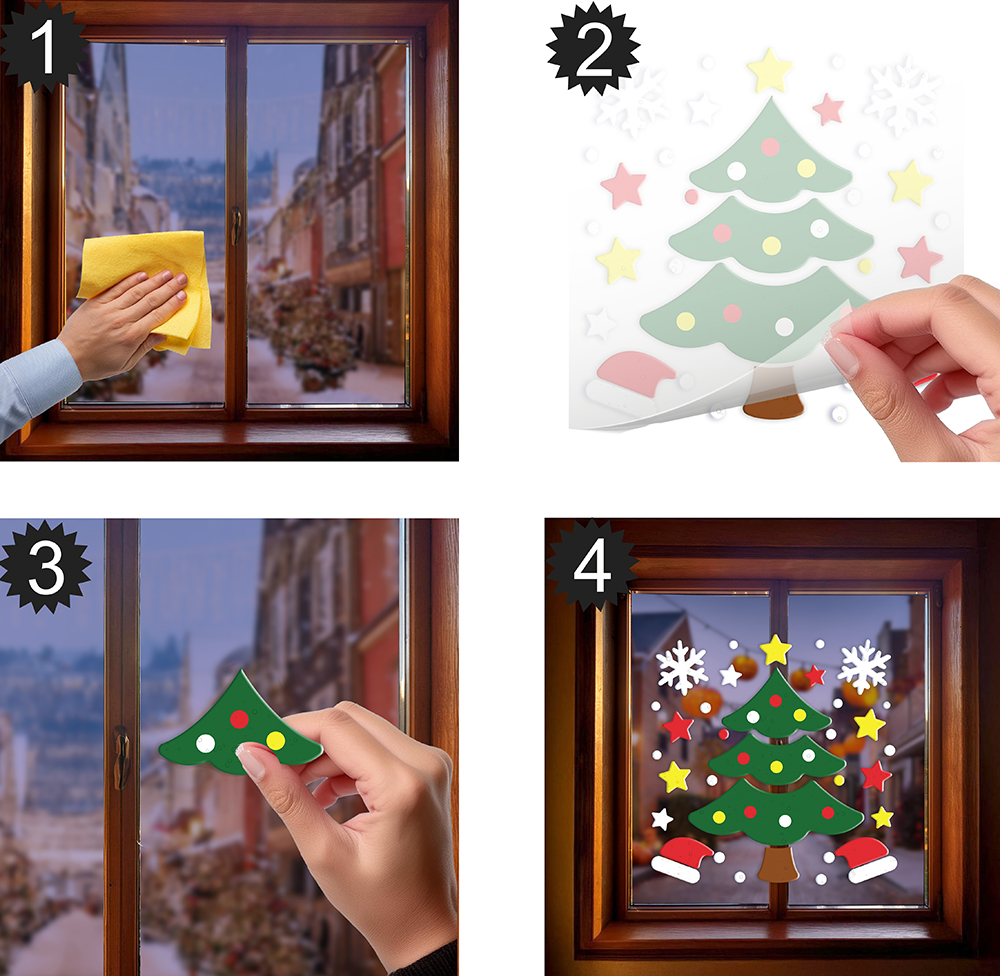 Vánoční dekorace na okno, díky které můžete naladit atmosféru ve vašem bytě. Zároveň bude vaše okno vypadat skvěle po celou dobu vánočních svátků. Gelové samolepky krásně přilnou a dají se použít opakovaně.