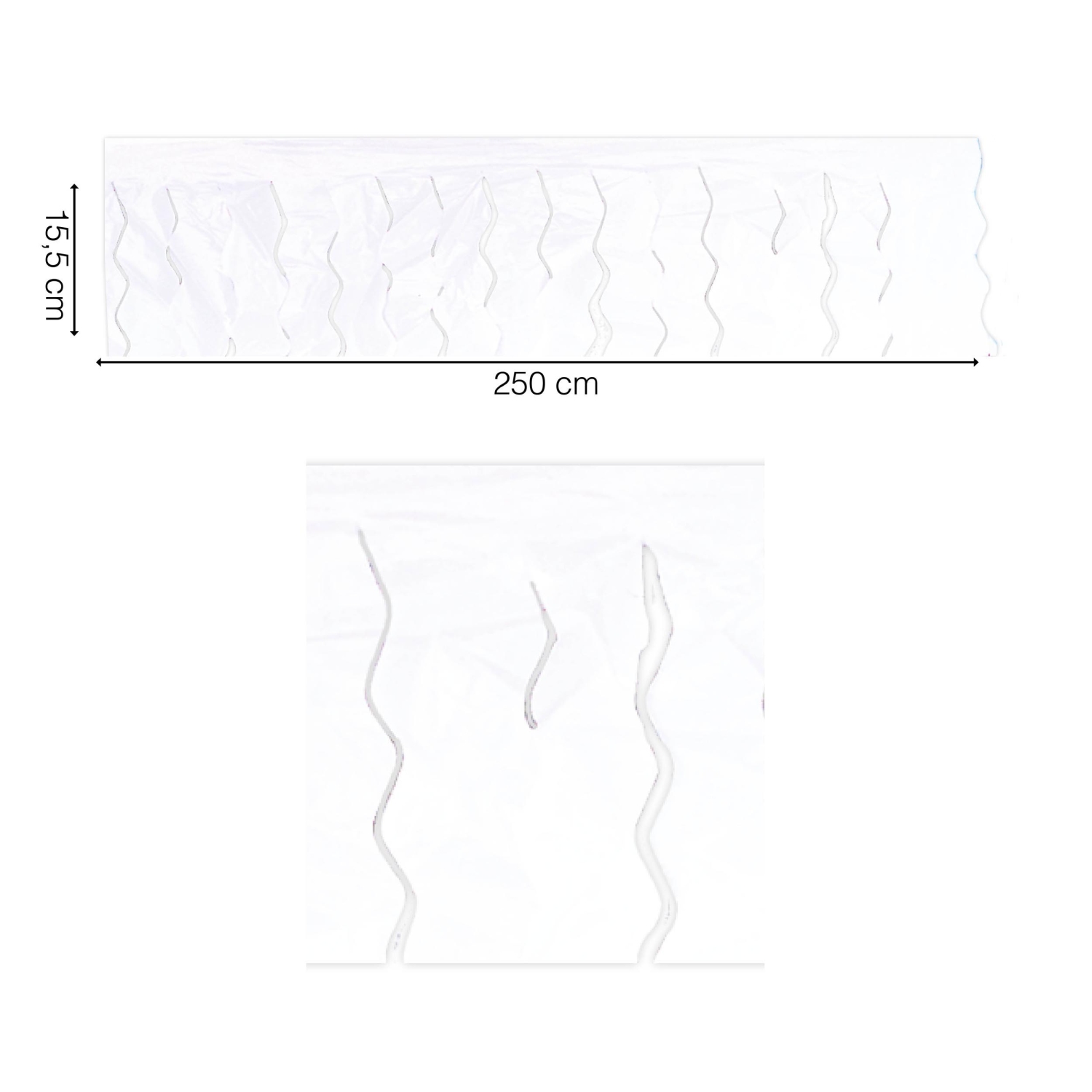 Technické parametry: Typ produktu: girlanda se střapci Barva: bílá Délka: 25 m Rozměr střapcové části: cca 250 x 15,5 cm Materiál: PVC Balení: 1 ks