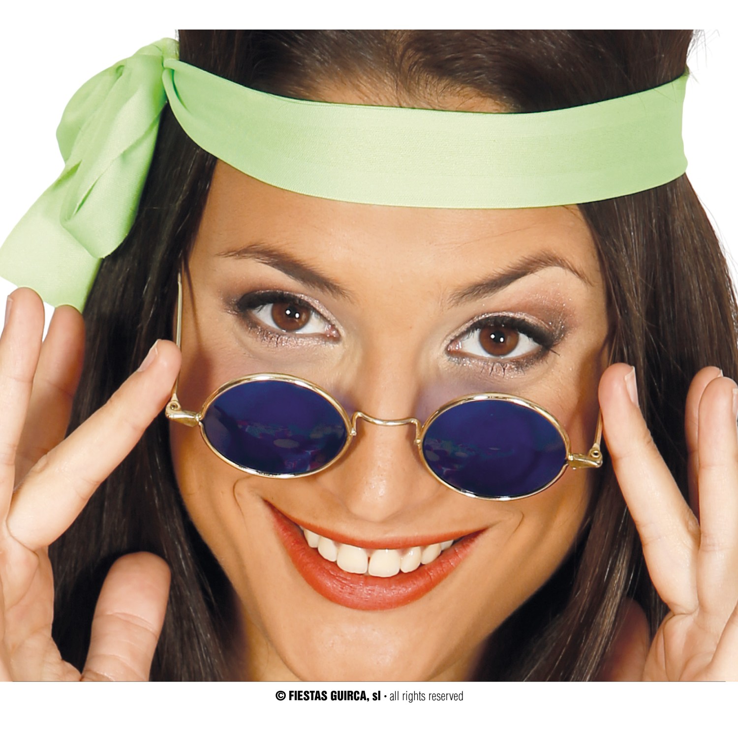 Kulaté hippie brýle, známé také jako lenonky, patří mezi nejvýraznější symboly 60. let. Modrá skla v kombinaci s tenkým kovovým rámem vytváří typický retro vzhled, který se hodí na hippie party, tematickou 60’s oslavu, festival nebo karneval.
