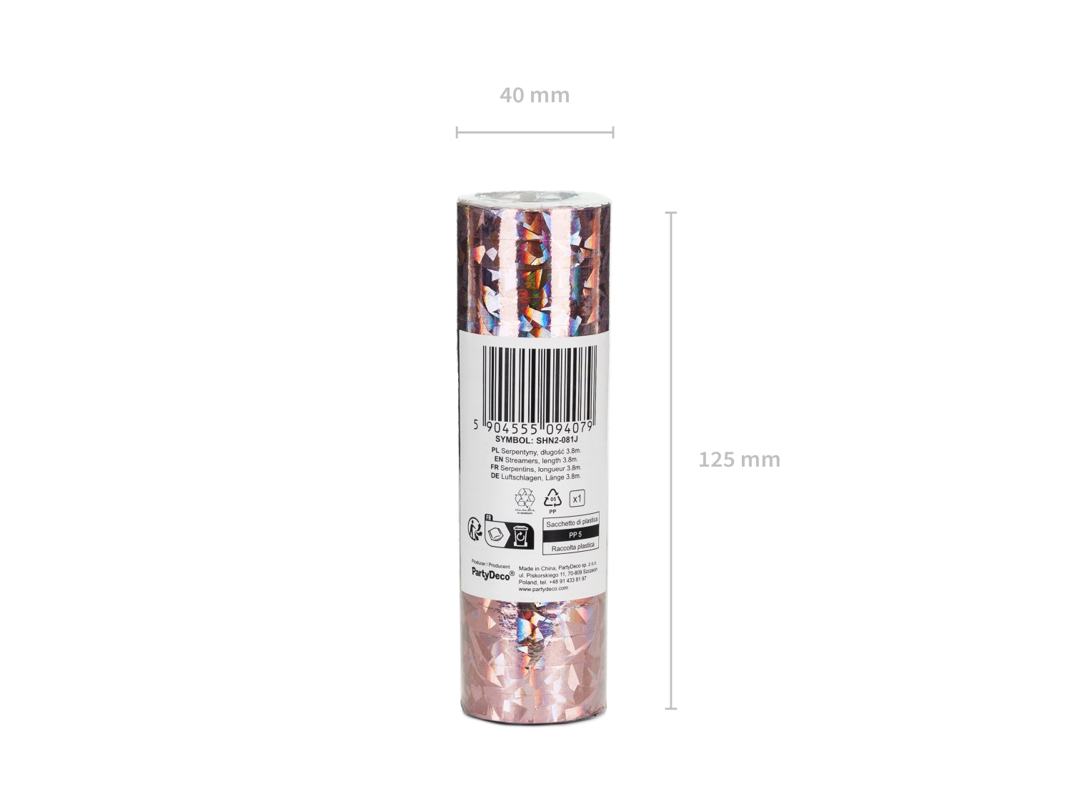 Světle růžové holografické serpentiny o délce 3,8 m jsou perfektní volbou pro dekorace, které mají působit jemně, ale zároveň efektně. Holografický povrch vytváří krásné odlesky při jakémkoli osvětlení, takže se skvěle hodí na narozeninové oslavy, dívčí party, baby shower, tématické oslavy ve stylu glamour nebo unicorn.