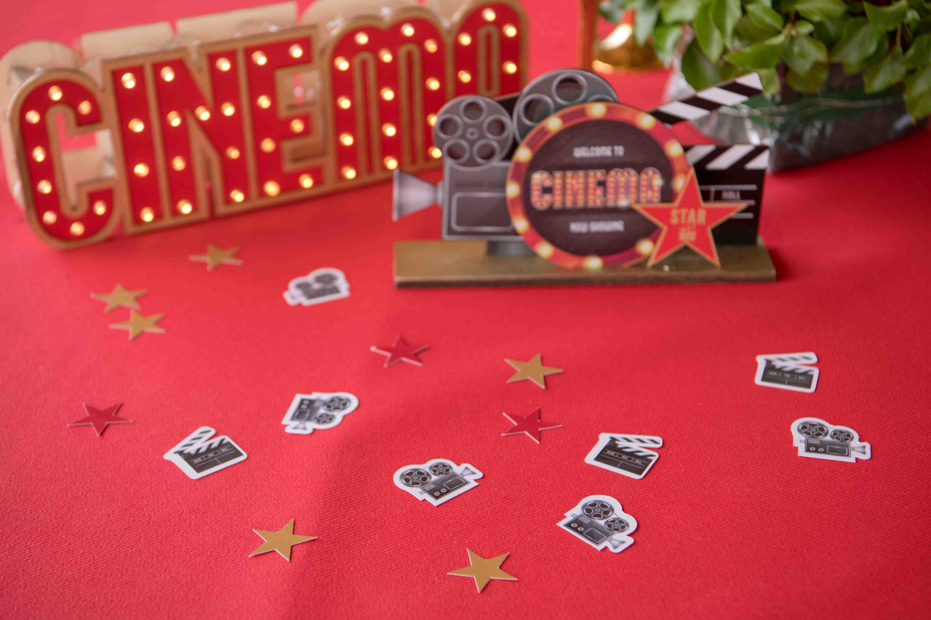 Dodejte své oslavě filmový lesk s originálními konfetami Movie Night Hollywood! Tyto papírové dekorace s ikonickými motivy jako filmová kamera, režisérská klapka a zlaté i červené hvězdy jsou ideální pro výzdobu stolů při premiérách, narozeninových party ve stylu Hollywoodu i firemních večírcích s filmovým tématem.
