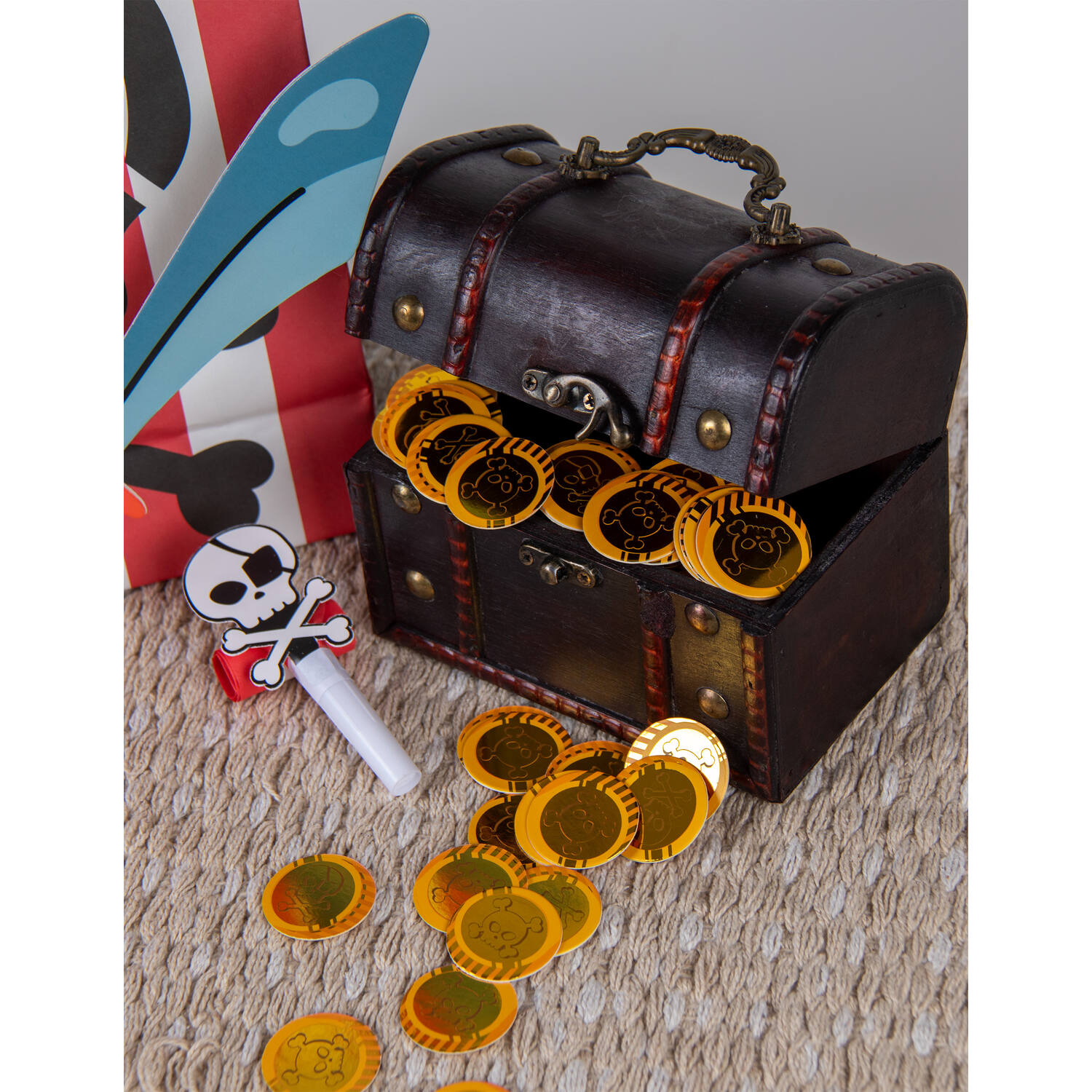 Papírové konfety, ve tvaru pirátských mincí, které vyzdobí vaši narozeninovou oslavu v pirátském stylu i poslouží jako odměna pro malé hledače pokladů.