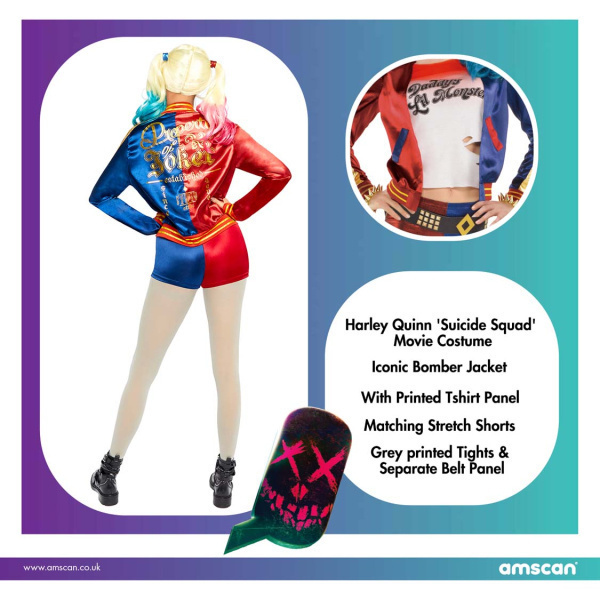 Kostým Harley Quinn z filmu Suicide Squad. Hodí se jako převlek na Halloweenskou party, karneval, nebo jen tak pro zábavu.
