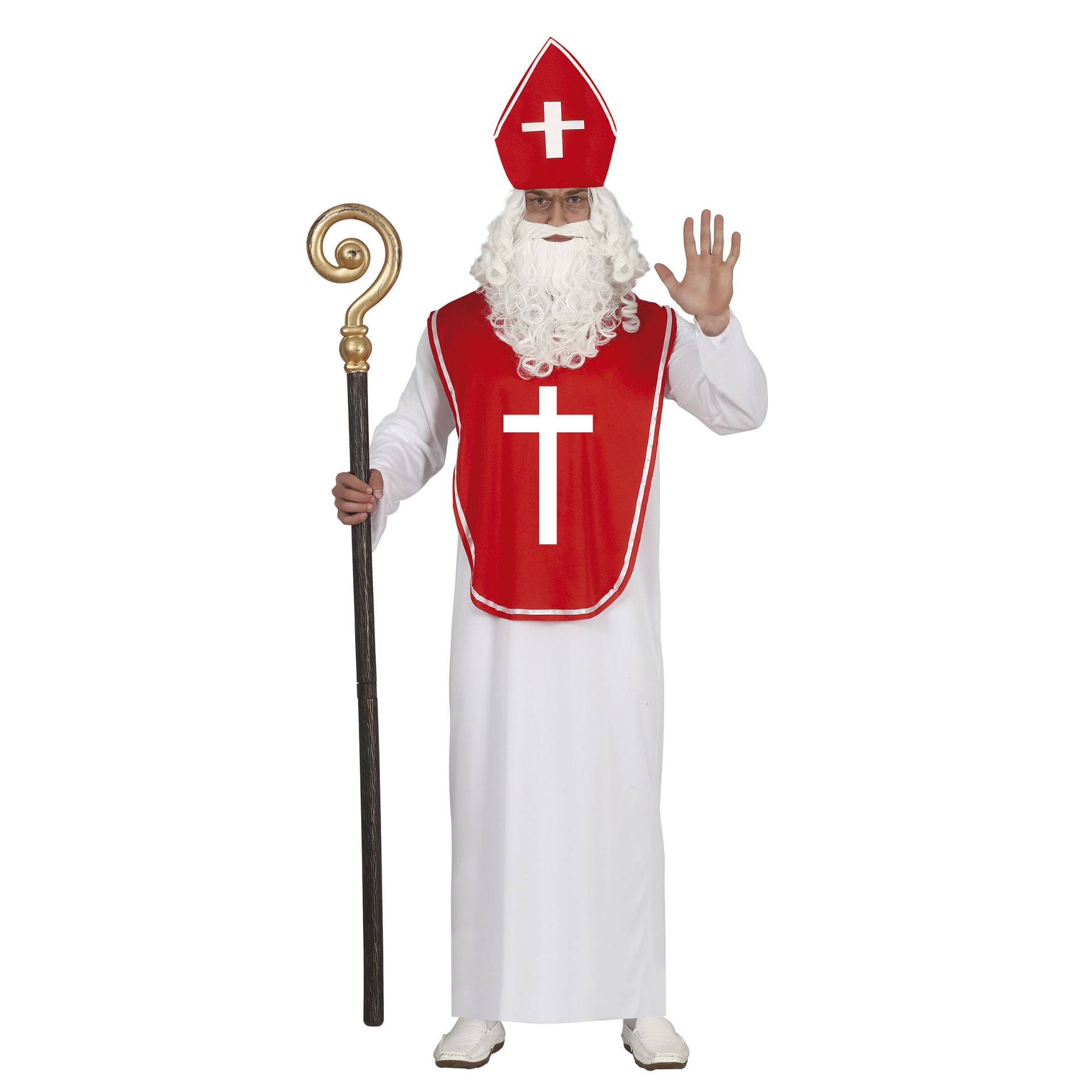 Mikulášský kostým kde najdete vše co potřebujete. Košili v délce od ramen 145 cm, mitru (čepici) a ornát. Univerzální velikost. Barevnost červená + bílá. Doporučujeme ale přiobjednat vousy a Mikulášskou hůl, které nejsou součástí.
