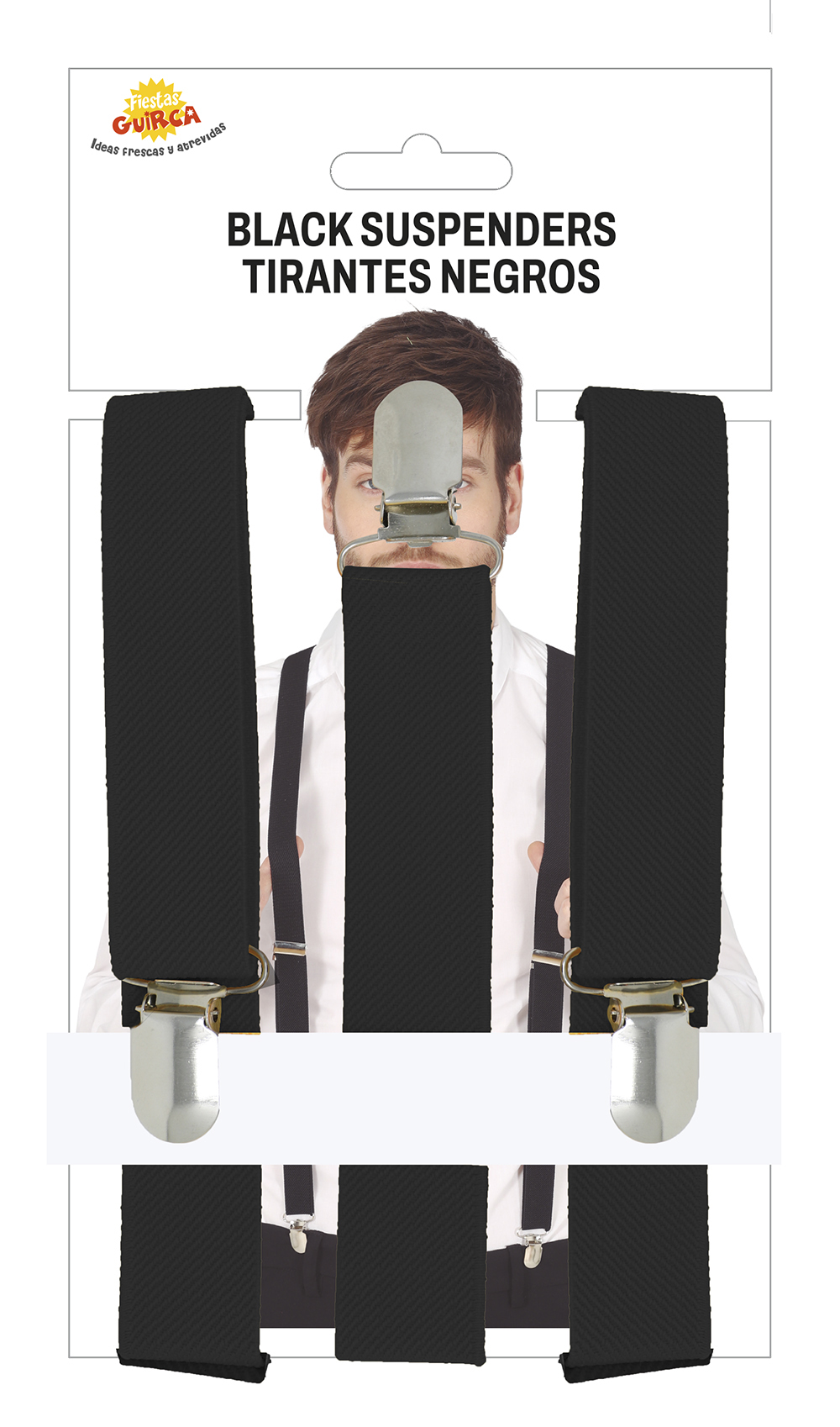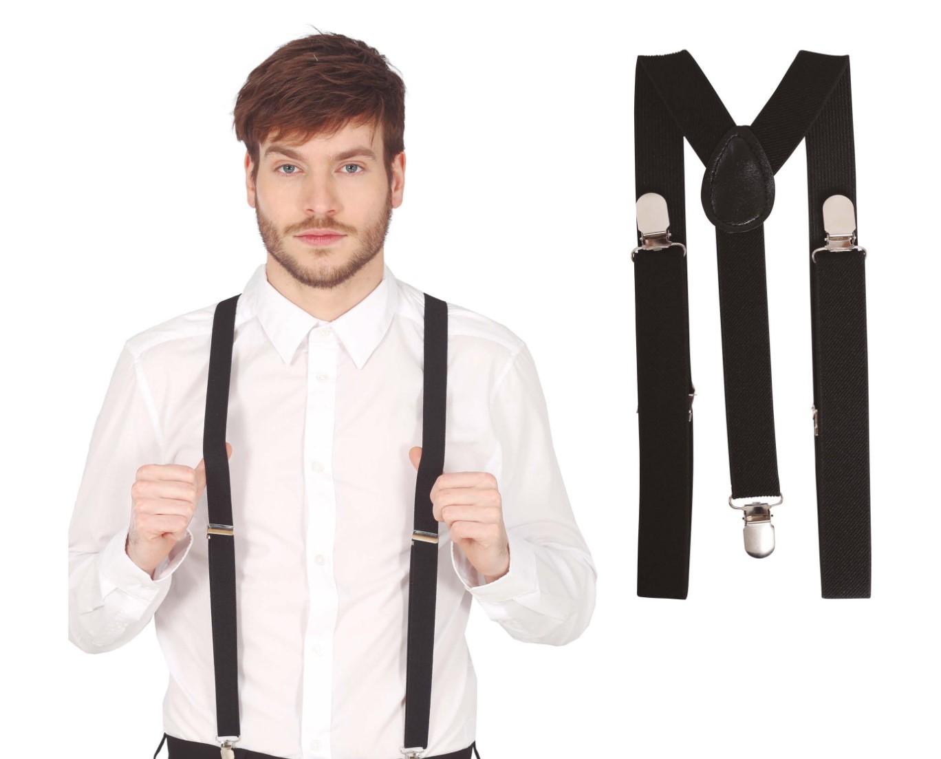 Černé kšandy, zapínání pomocí cvočků.