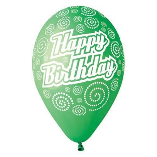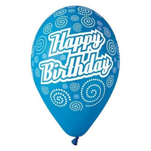 Barevný latexový balonek s potiskem Happy Birthday ve stylu kostiček, velikost 30 cm. Skvělý doplněk narozeninové výzdoby, vhodný pro plnění vzduchem i héliem.