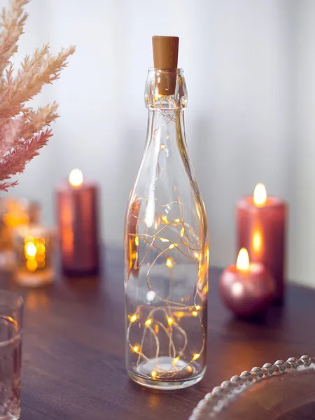 LED řetěz se špuntem. Vložte světélka do lahve a vytvořte tak nepřekonatelnou designovou krásu! Dokonalá dekorace, kterou oslníte všechny hosty na vaší party. Hodí se jako svatební dekorace, na křtiny nebo jako výzdoba do foto koutku. Skvěle půjde na Vaší zahradní svatbě ale třeba o doma jako doplněk do bytu.