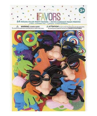 Zábavný mix 64 drobných hraček pro děti – ideální jako výplň do piñaty, odměny za soutěže nebo výslužky. Obsahuje frkačky, brýle s nosem, joja, káči, bludiště a další. Vhodné pro děti od 3 let.