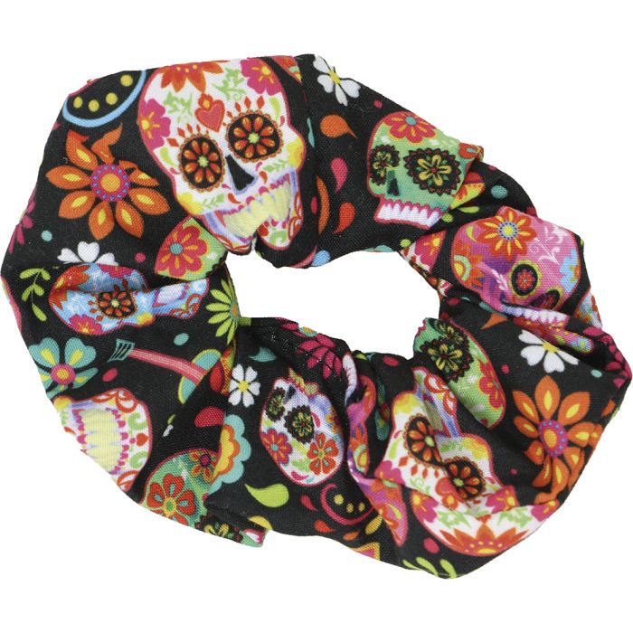 Gumička do vlasů - Day of the dead. Ozdobná gumička do vlasů v motivu Dia de los Muertos, hodí se jako doplněk ke kostýmu na Halloweenskou party nebo jen jako doplnění outfitu.