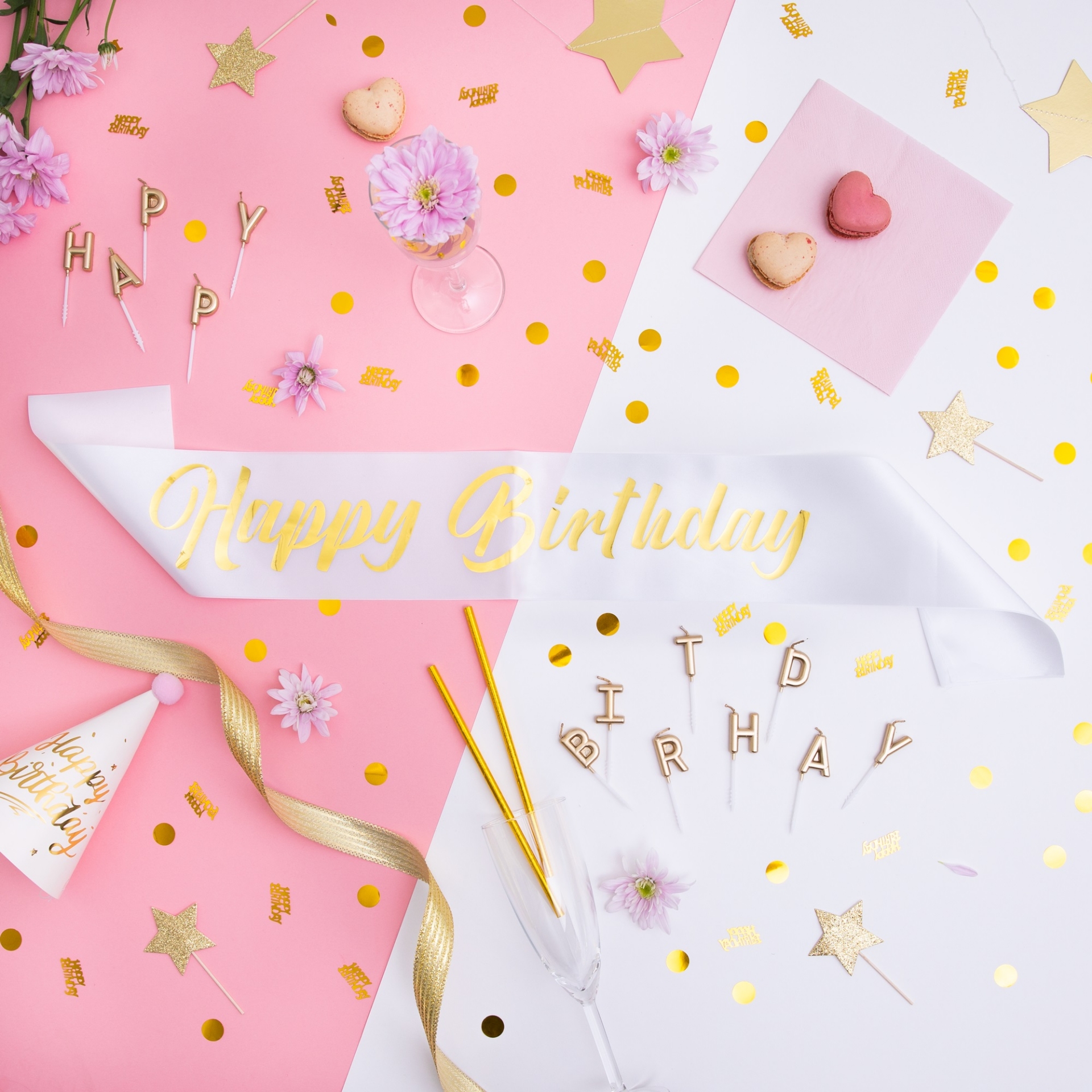 Bílá narozeninová šerpa se zlatým nápisem Happy Birthday. Narozeninová šerpa je skvělý nápad, jak odlišit hvězdu narozeninové oslavy. Klasická elegance, kombinace bílé s jemně třpytivým zlatým nápisem Happy Birthday, jistě osloví každého oslavence. Šerpa je vyrobena z jemného saténu, takže vypadá opravdu elegantně, rozměry jsou 10 x 160 cm.