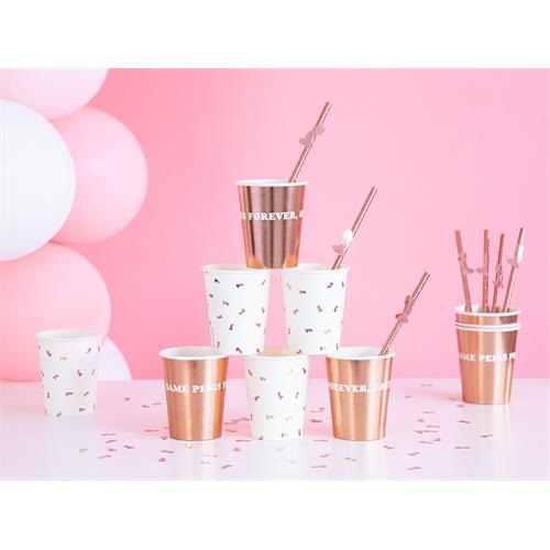Papírové kelímky penis, které jsou v balení ve dvou variantách. Bílé s potiskem penisu a v metalické rose gold barvě s nápisem "Same penis forever".  Vhodné na rozlučku se svobodou, Hen Party, rozlučkovou oslavu.