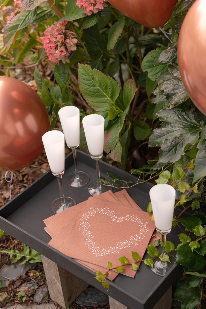 Luxusní ubrousky s motivem srdce, vhodné na svatební dekoraci stolu ale i narozeninové party nebo jinou oslavu. Svou pevností a strukturou dokonale nahrazují textilní ubrousky a jsou ideální ke slavnostním příležitostem. Ubrousky jsou příjemné na dotek a mají skvělé vlastnosti pro skládání, jsou pevné a uvnitř hebké. Zůstává pevný i za mokra.
