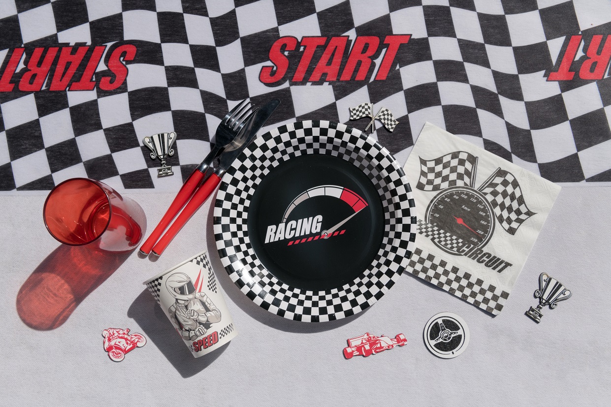 Dodejte své párty závodní atmosféru! Tyto papírové ubrousky s motivem šachovnicové vlajky, rychloměru a nápisem „Circuit“ jsou ideální na oslavy s tematikou Formule 1. Skvěle se hodí k ostatním produktům ze stejné kolekce – kombinujte je s talířky, kelímky nebo běhounem se startovní čárou. Praktické a stylové zároveň, tyto ubrousky ocení jak děti, tak dospělí fanoušci motorsportu.