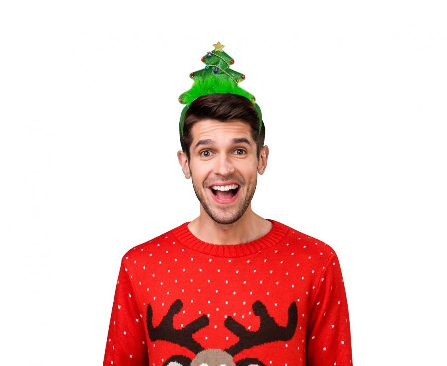 Party čelenka s motivem ozdobeného Vánočního stromečku. Humorná čelenka ve stylu Vánočního stromku bude neodolatelným lákadlem firemního večírku, nebo Vánoční party. Skvěle se hodí do vánočního foto koutku, nebo jako doplněk k vánočnímu kostýmu. Balení 1 ks.