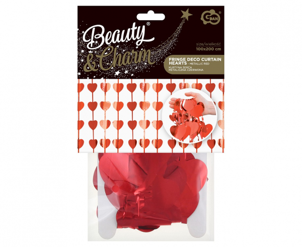 Party závěs metalický červený - srdíčka 100 x 200 cm