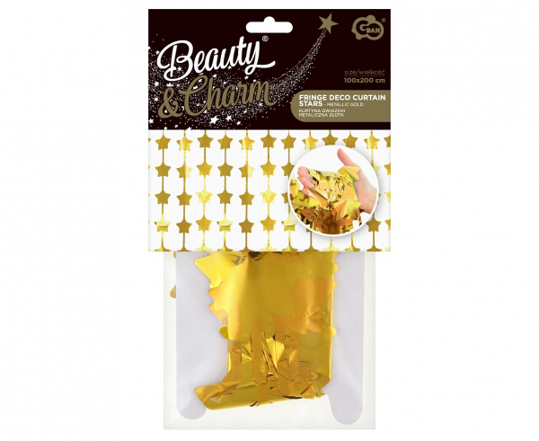 Party závěs metalický zlatý - hvězdičky 100 x 200 cm