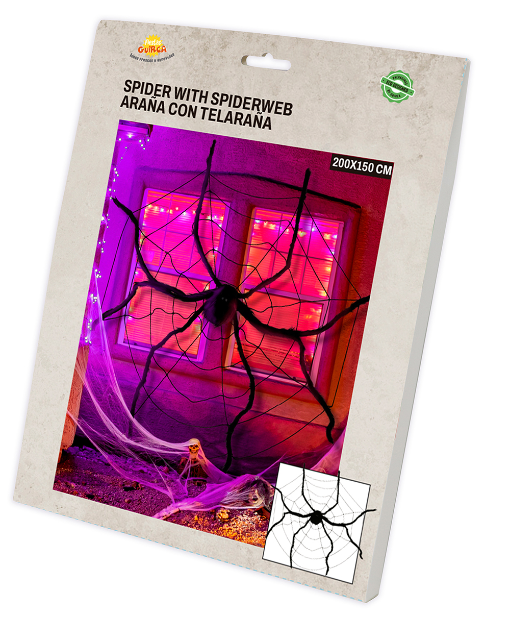 Pavouk s obří pavučinou 200 x 150 cm je skvělá halloweenská dekorace, která dodá vašemu domu nebo zahradě strašidelnou atmosféru. Díky svým rozměrům zaručeně upoutá pozornost každého hosta.