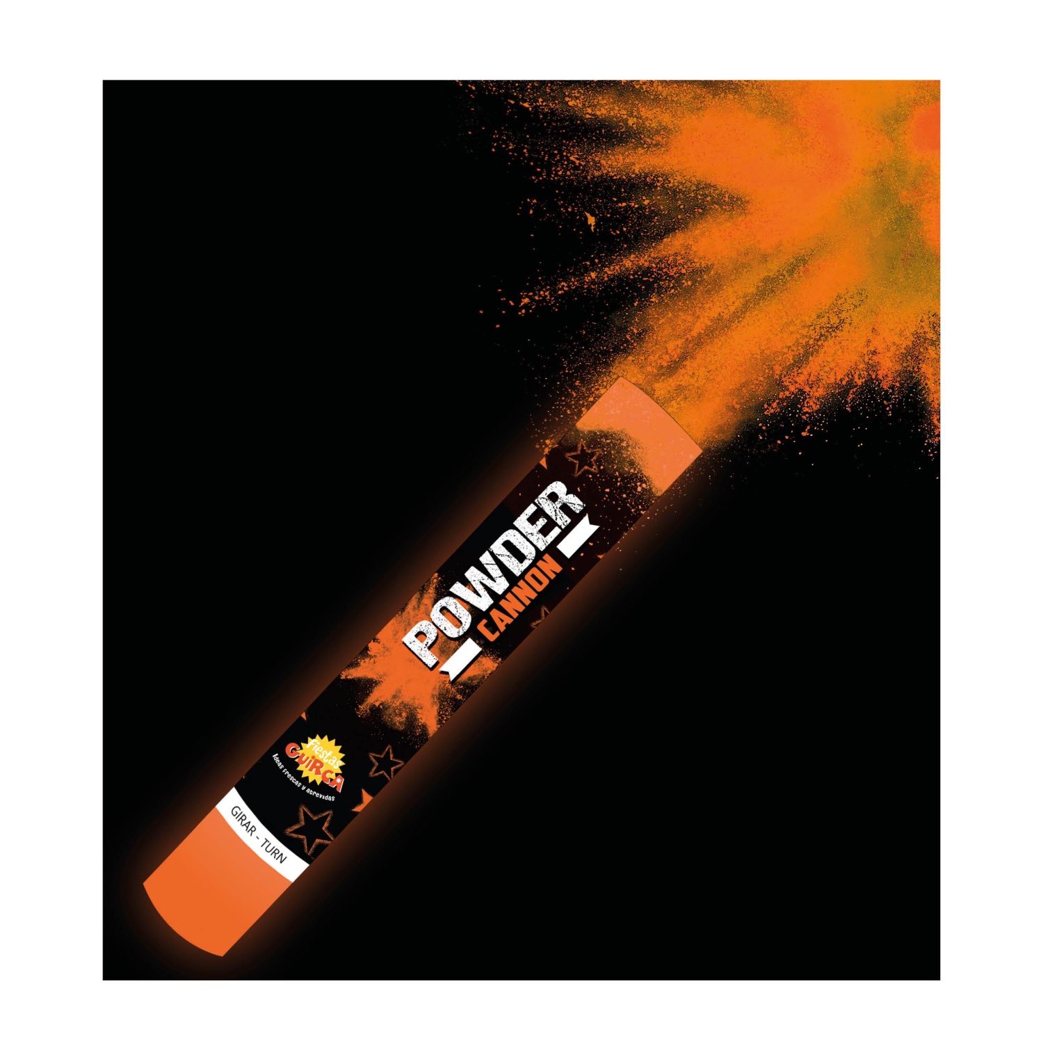 Práškové dělo o délce 30 cm naplněné 30 g oranžového prášku je jednoduchý a přitom velmi efektní party doplněk. Stačí otočit spodní část a během okamžiku vznikne hustý oblak barvy, který okamžitě přitáhne pozornost a vytvoří výrazný moment pro fotografie i video.