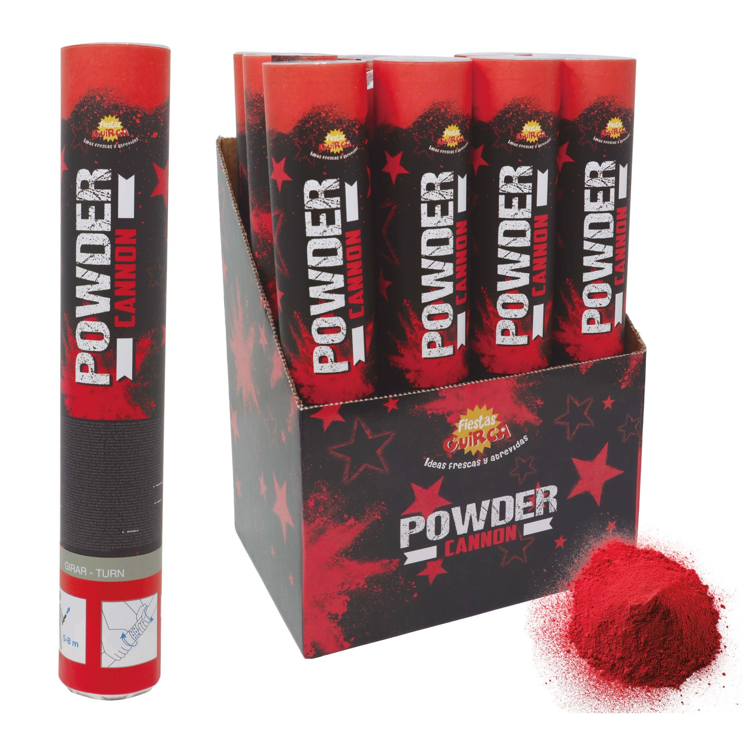 Práškové dělo o délce 30 cm naplněné 30 g červeného prášku je výrazný party efekt, který během okamžiku vytvoří hustý oblak barvy. Jednoduchým otočením spodní části získáte silný vizuální moment, který skvěle vynikne na fotografiích i videu.